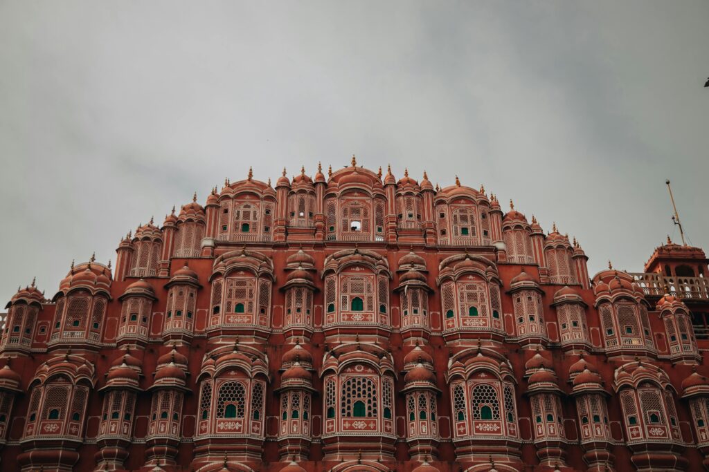Jaipur, the “Pink City” of Rajasthan, is a treasure trove of royal history, colorful culture, and stunning architecture. At the heart of the city stands the iconic Hawa Mahal, or “Palace of Winds,” with its intricate latticework and towering façade, designed to let royal women observe street life while enjoying privacy and cool breezes.